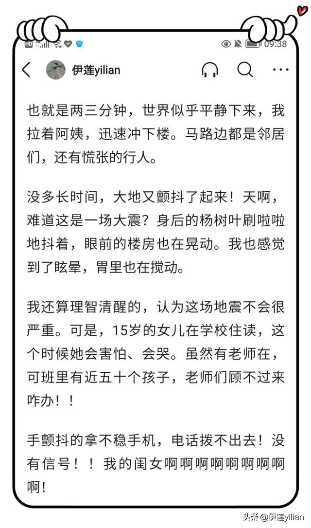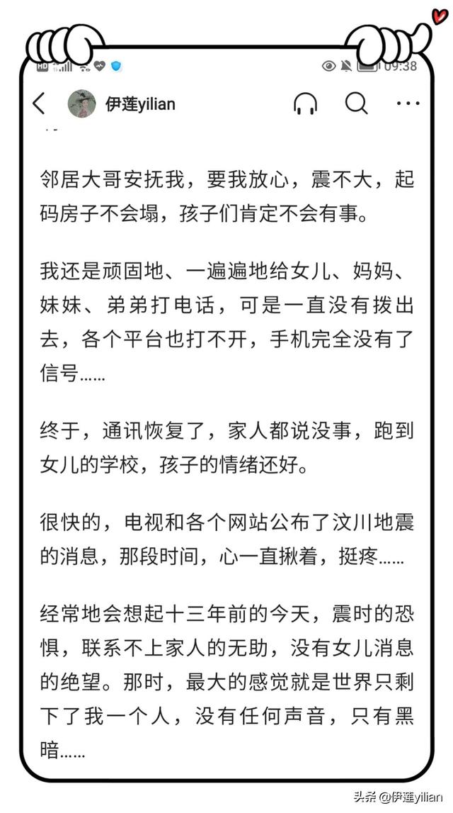 我知道,找不到家人時(shí)恐懼、無助,看到家人逝去時(shí)悲傷、痛苦,埋在廢墟里對活著的渴望和祈盼……這一切,我感同身受!