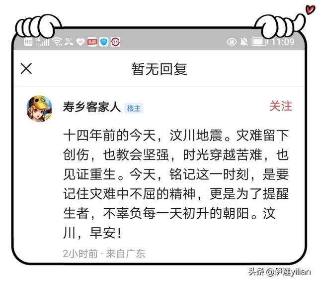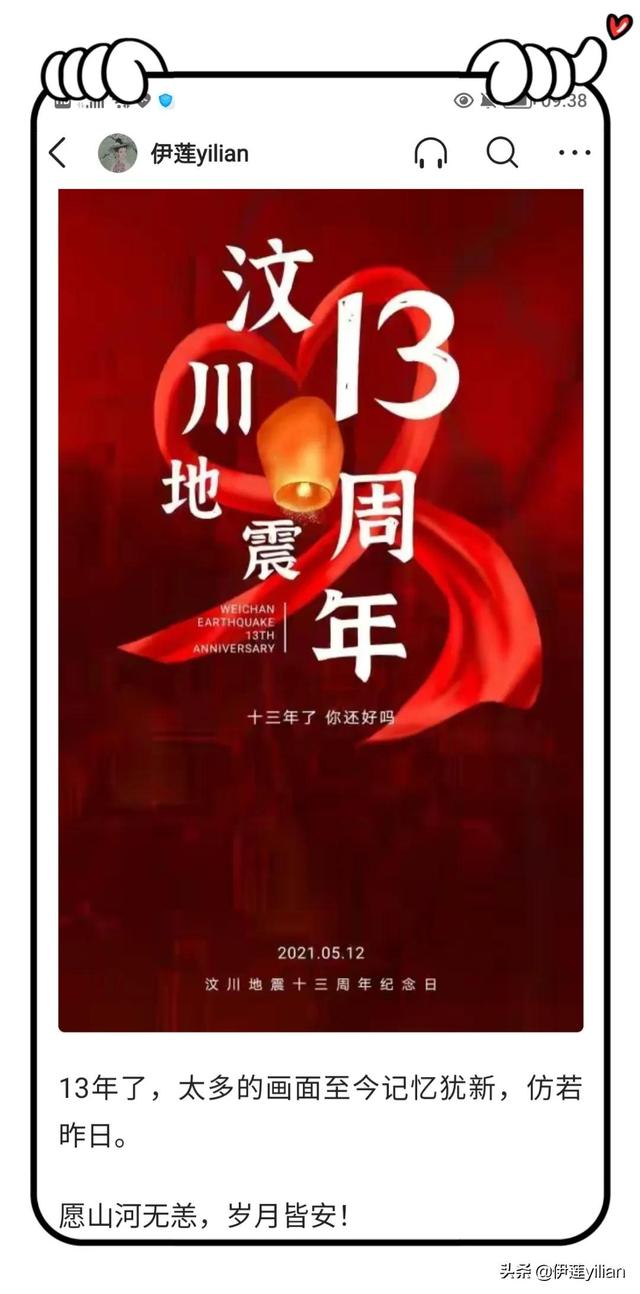 “緬懷逝者同胞,也銘記危急時(shí)刻的生死救援,災(zāi)難面前的守望相助。一起致敬重生,祝福汶川!共守美好家園。”(條友評論)