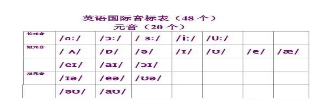 我們知道英語中有48個音素,其中20個元音音素如下圖