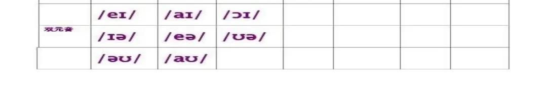 我們可以對比一下就可以看出來,加兩個?的是長元音需要延長,不加?的是短元音,讀的時候短促而有力。10個單元音就能快速掌握了,外加兩個“蝴蝶結(jié)”就是最后兩個/ e / /?/。雙元音就是把單元音組合拼讀,孩子們就不是問題了,可以試試讀以下雙元音。