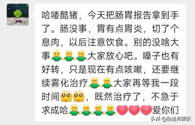 對于自己的病情文兒也在粉絲群進(jìn)行了通告,她最終還是去切了個(gè)息肉,并且還有胃炎。
