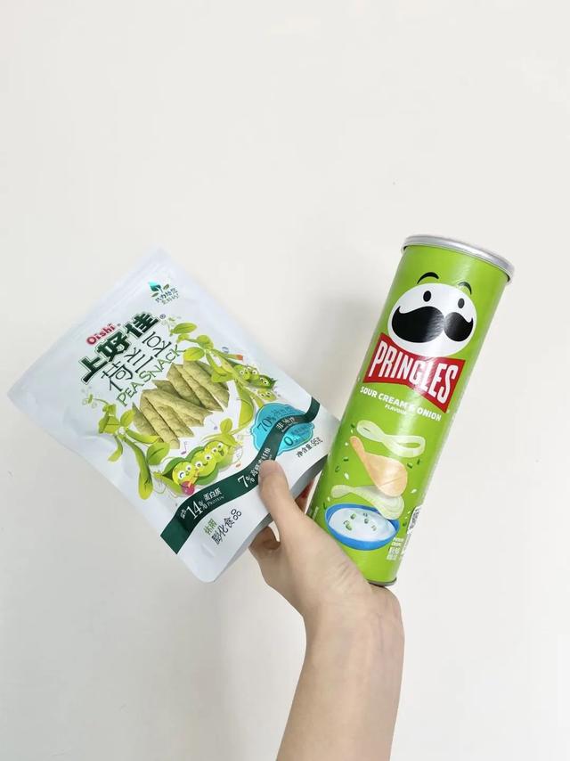 其實(shí)“綠色”指的是包裝……品客的酸乳酪洋蔥味薯片,酸酸的有一點(diǎn)點(diǎn)辣但不嗆。上好佳荷蘭豆特有嚼頭,喜歡這種味道的還可以嘗嘗卡迪那的豌豆脆,感覺豌豆脆更好吃一些??杀瓤说臒疚妒砥埠苌习a,最近吃了好多零食啊哈哈哈!