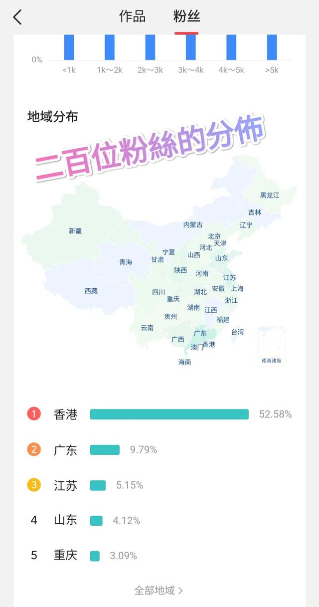 同時(shí),感謝內(nèi)地粉絲支持,我的粉絲分佈多省,以廣東為主,可能因?yàn)槲野l(fā)佈了「廣東拾趣」照片輯,受到關(guān)注。