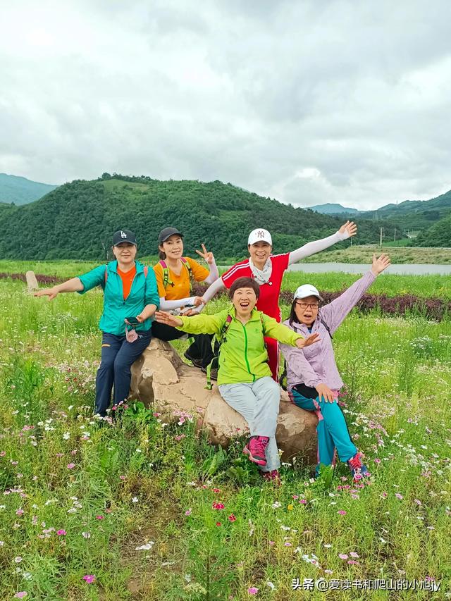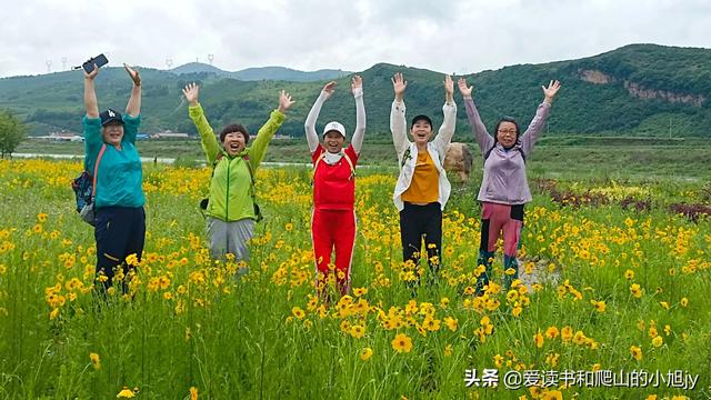 花海、青山,相互輝映,這地方我們是一定要打卡的。這不我們開啟了打卡模式,五姐妹爬上了石頭,領(lǐng)隊(duì)畫哥給我們錄像拍照,他喊,“遼陽鐮刀灣”,我們五個(gè)接著歡呼,“我們來了!”劇本不用彩排,我們都很熟悉。